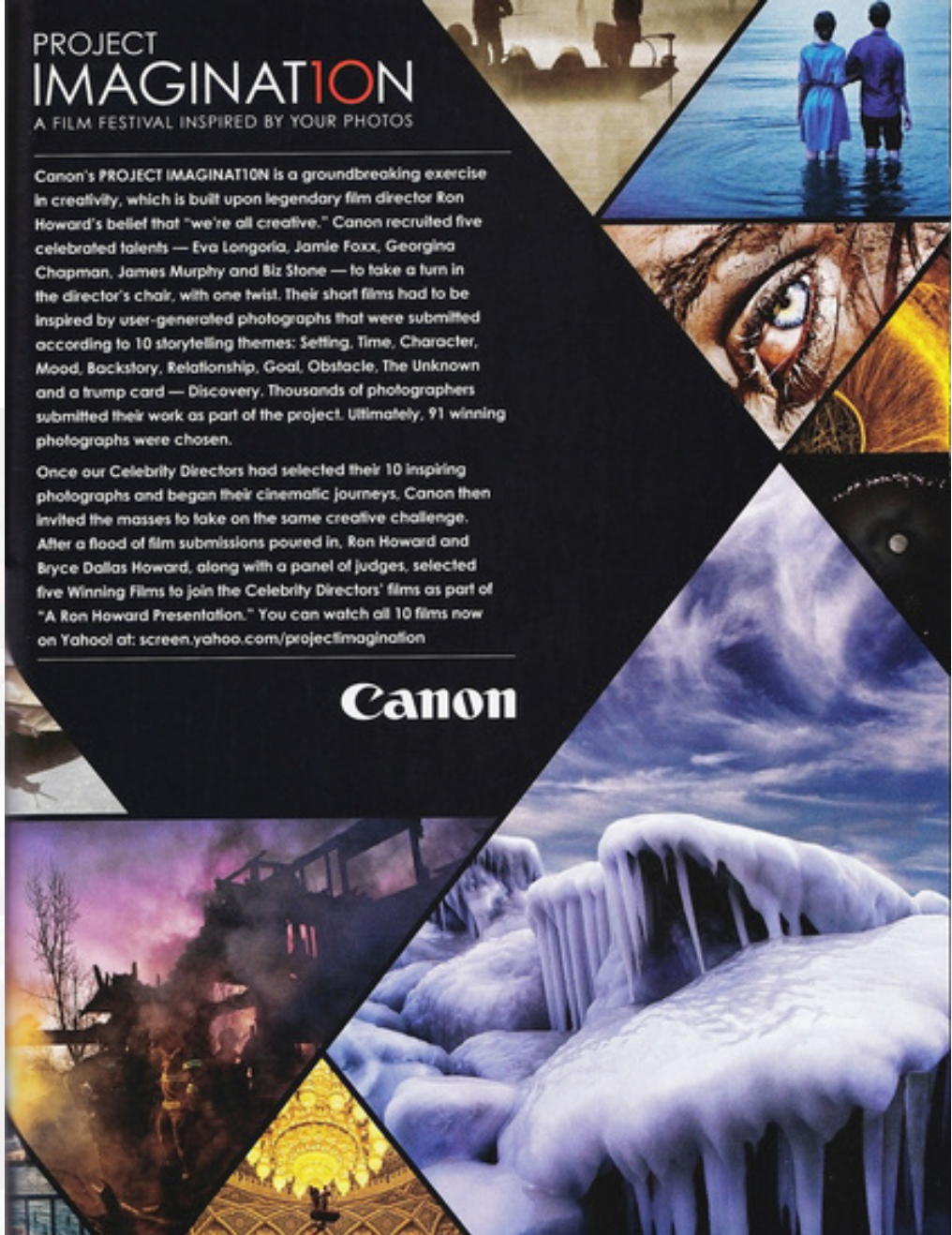 Sammie Saxon's image Lost in Blue was selected by Eva Longoria, Ron Howard, and Biz Stone to inspire scenes for their film shorts for Canon camera's Film Fest and photography exhibit Project Imagination